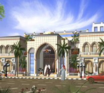 The building is about 1000 sq.mts. Consists of Basement use as Multi-Purpose Hall, ground Floor use as the Main Diwaniya and daily Hall with ample space for entrance open with skylight. Mezzanine floors with 3 halls and 3 types of seating were designed. |